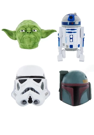 Features R2-D2, Yoda, Stormtrooper, and Boba Fett.