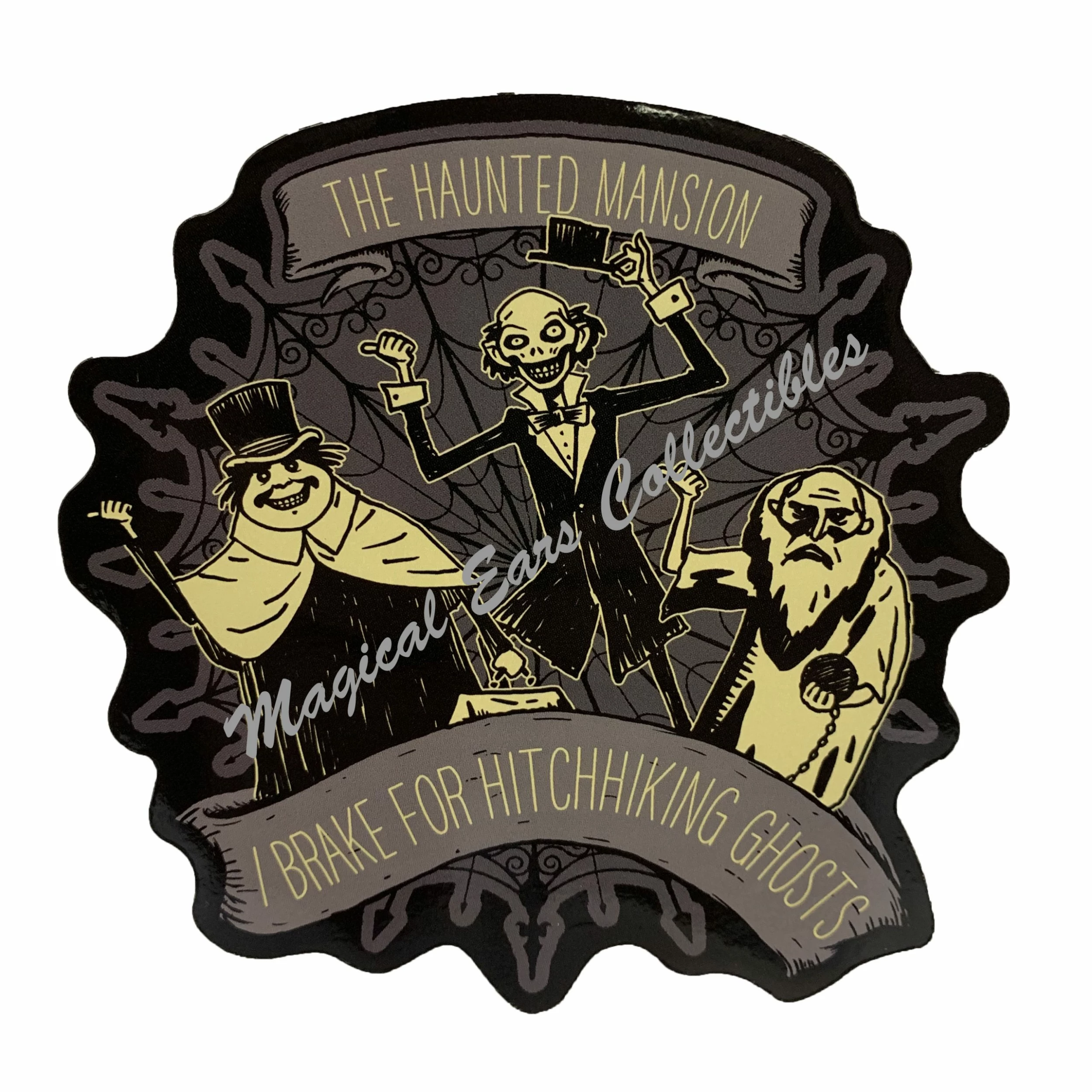 Place on your car, or your refrigerator. The fun Haunted Mansion Magnet features the Hitchhiking Ghosts and says I Brake for Hitchhiking Ghosts.