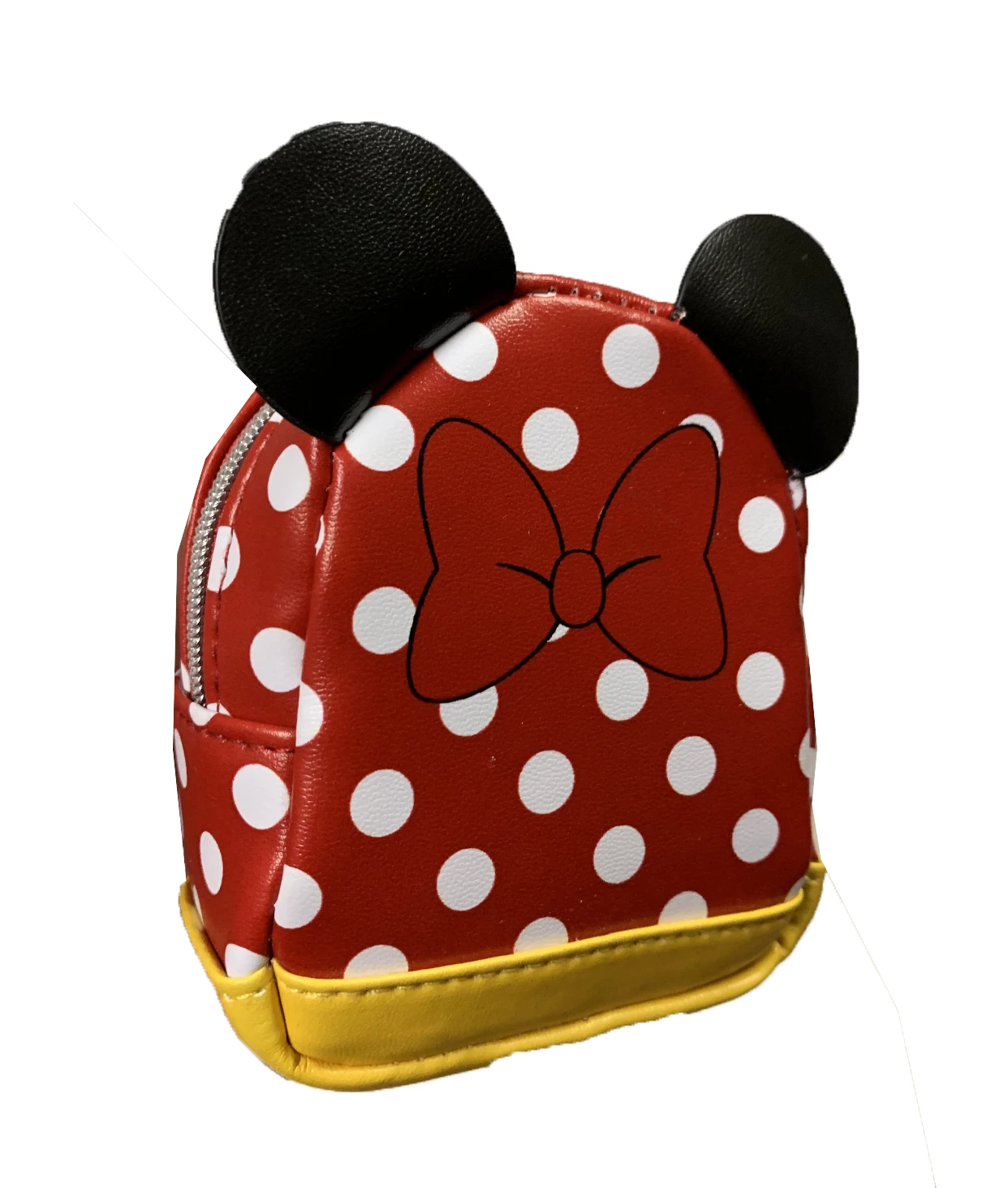Travel with Minnie Mouse with this cute Keychain. Features a mini Backpack, which can be used for a coin purse or small items, and Featuring Minnie Mouse.