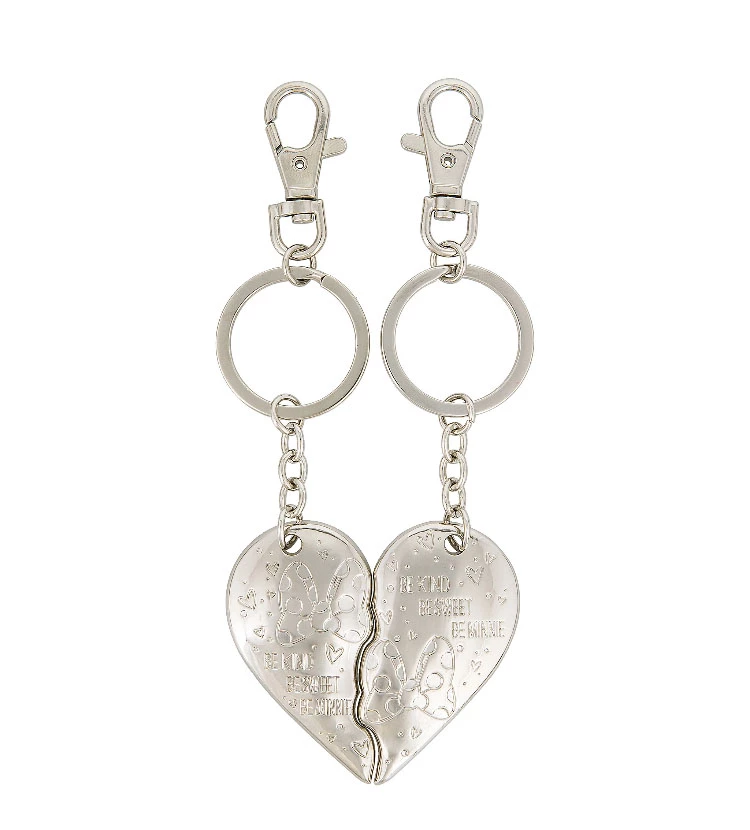 This fun Keychain Set Features two Keychains that shape together as a heart, with the wording Be Kind, Be Sweet, Be Minnie on each heart half.